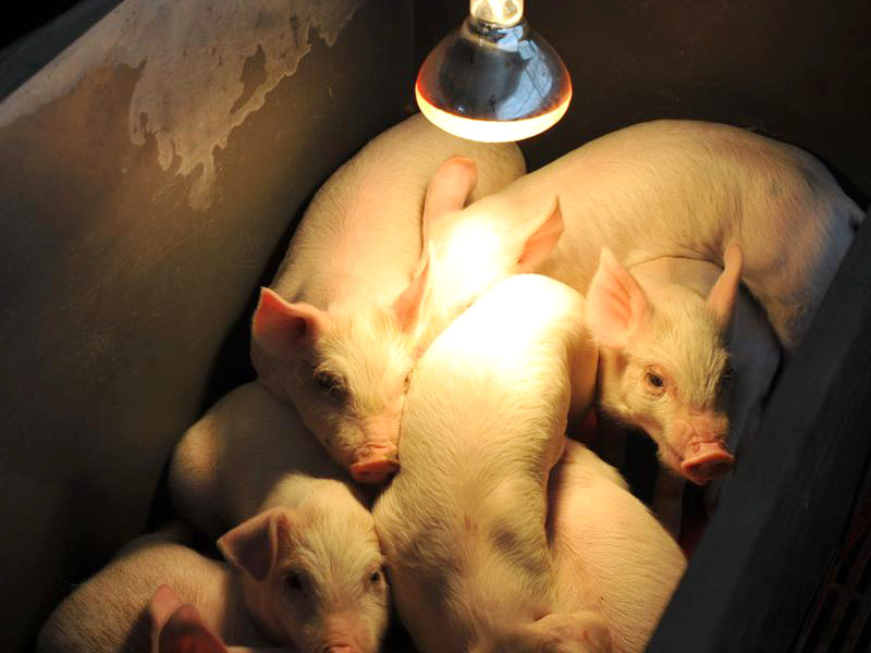 剛產(chǎn)出率的仔豬一般放到保溫箱體中,保溫箱體放到產(chǎn)床邊,在產(chǎn)房屋溫10°C上下時,保溫箱體部一容般懸架一個200瓦的紅外感應電燈泡供暖就可以,有的待產(chǎn)室溫度太低,可適度提升紅外線燈的功率。在應用這類電燈泡供暖時,要留意電燈泡懸架的高度,避免燒灼仔豬,更要留意不必弄上水滴等液態(tài),防止電燈泡爆裂。